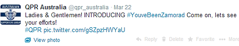 Following QPRs 3-1 away victory over Middlesbrough, which included a strange 'bottle cap assisted' goal scored by substitute striker Bobby Zamora, I got on twitter that night and saw a picture posted by the Official QPR page of Zamora's reaction to Barton soon after the ball went in the back of the net.